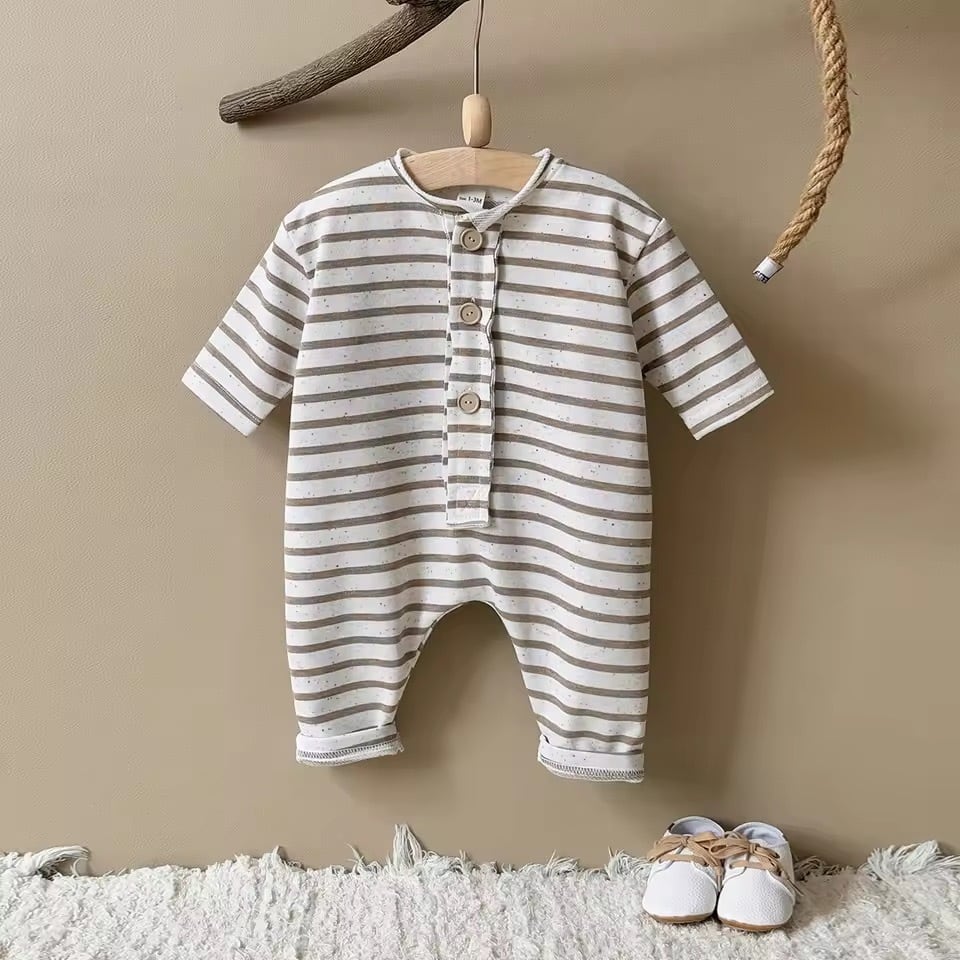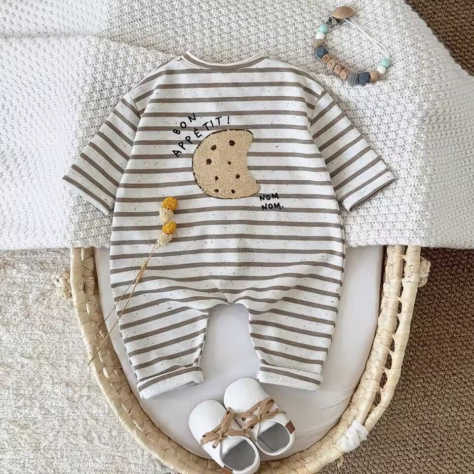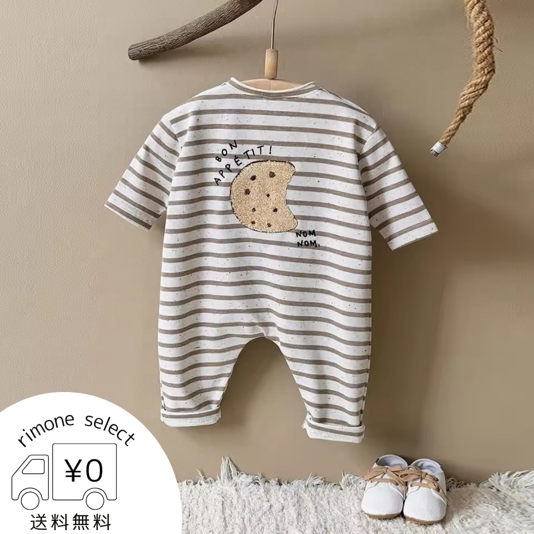 つぶつぶボーダーロンパース(クッキー)